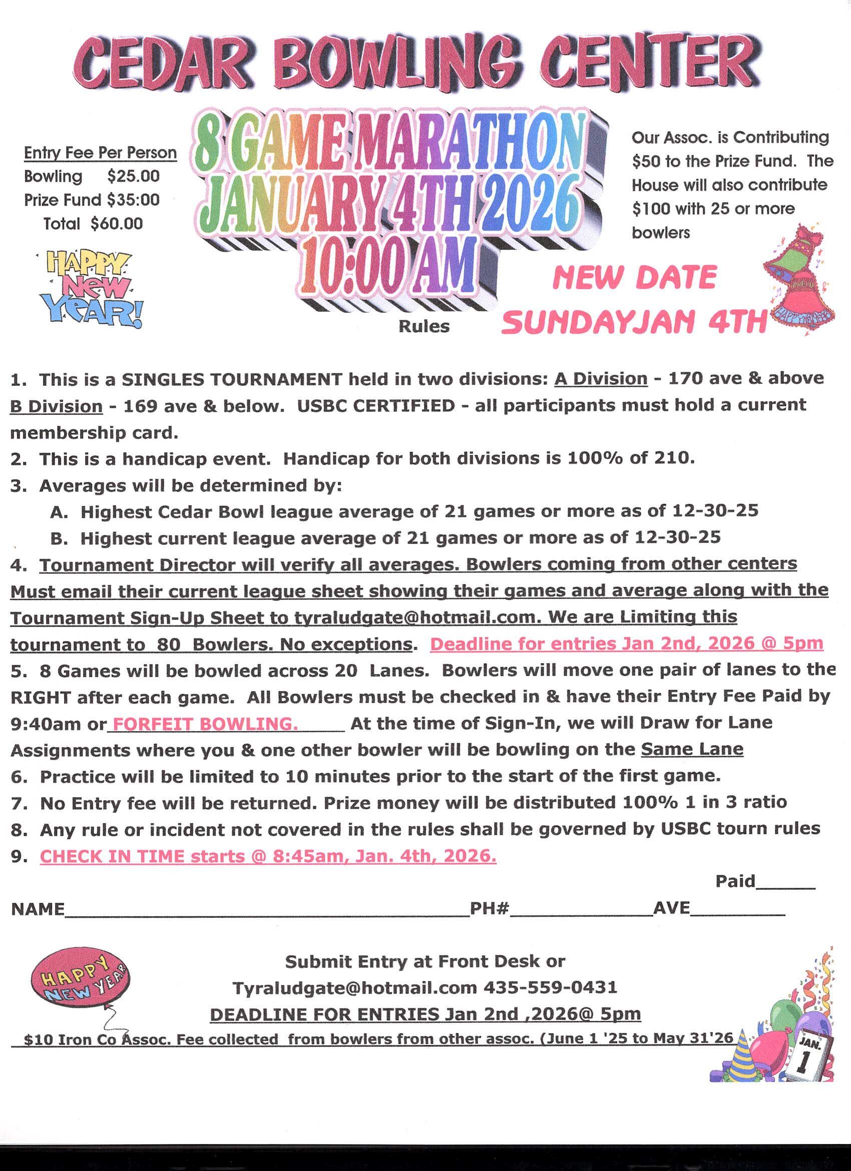 2026 8 Game Marathon New Years Day Bowling Tournament